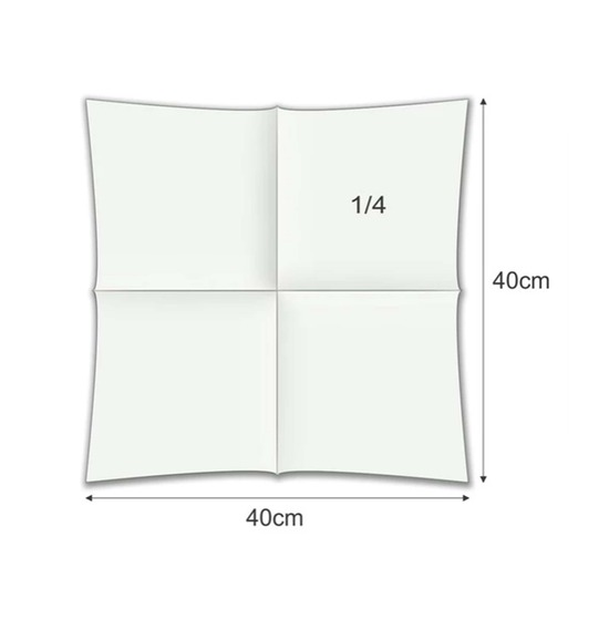 Serviette en Airlaid (non-tissé) 55g/m², format ouvert 40x40 cm, le pliage est standard dit 1/4, serviette pliée est au format carré.