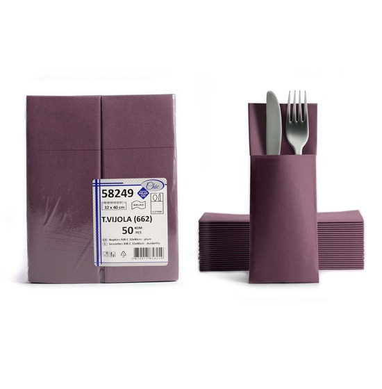 Serviette en Airlaid (non-tissé) 55g/m², pré-pliée pour former une pochette kangourou où glisser les couverts,