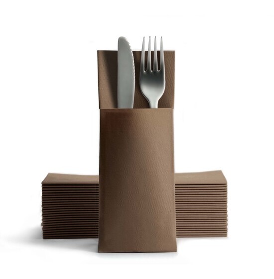 Serviette en Airlaid (non-tissé) 55g/m², pré-pliée pour former une pochette kangourou où glisser les couverts,